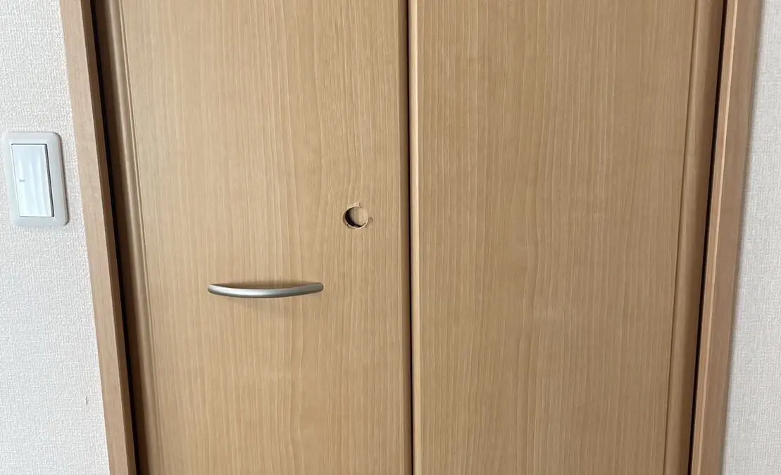 クローゼットの扉に物をぶつけてしまい、穴が空いてしまったとの事で