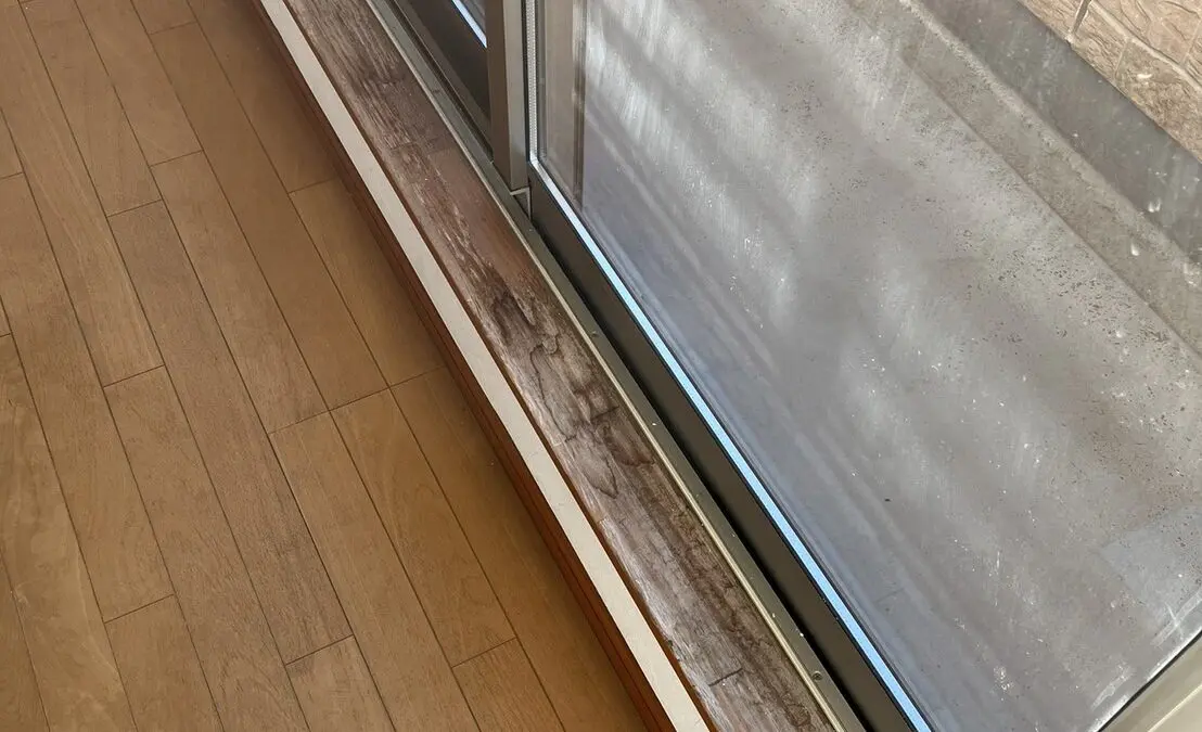 ベランダ側のサッシの木枠が太陽の日差しによって劣化してしまい