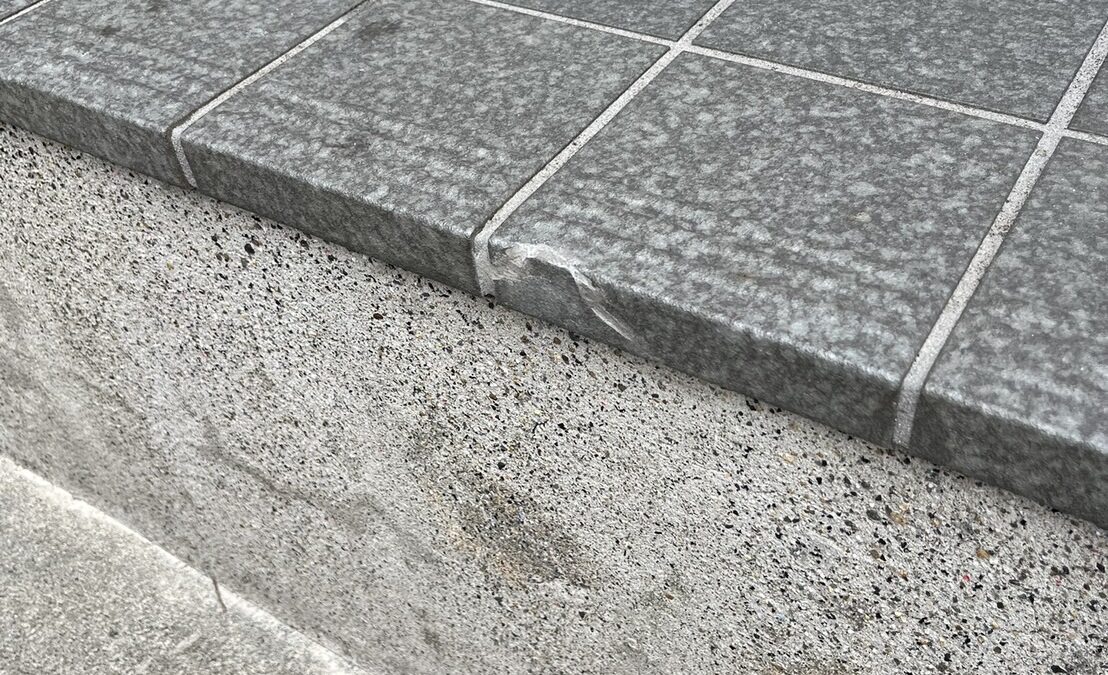 外壁リフォーム後の足場解体時、足場がタイルにぶつかってしまったとの事で