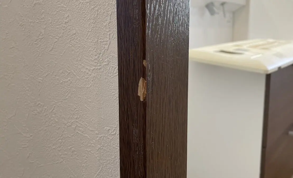 東京都奥多摩市 中古戸建て物件のリフォーム ドア枠の傷補修です。