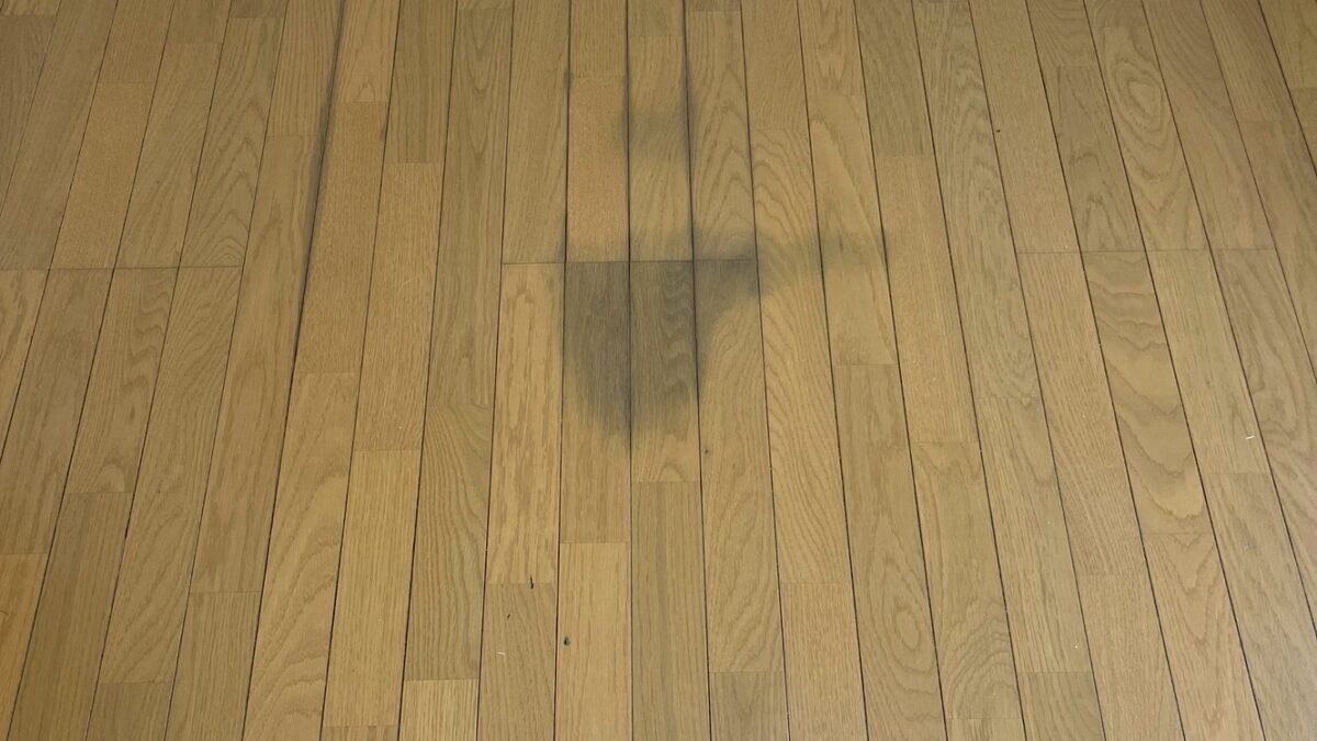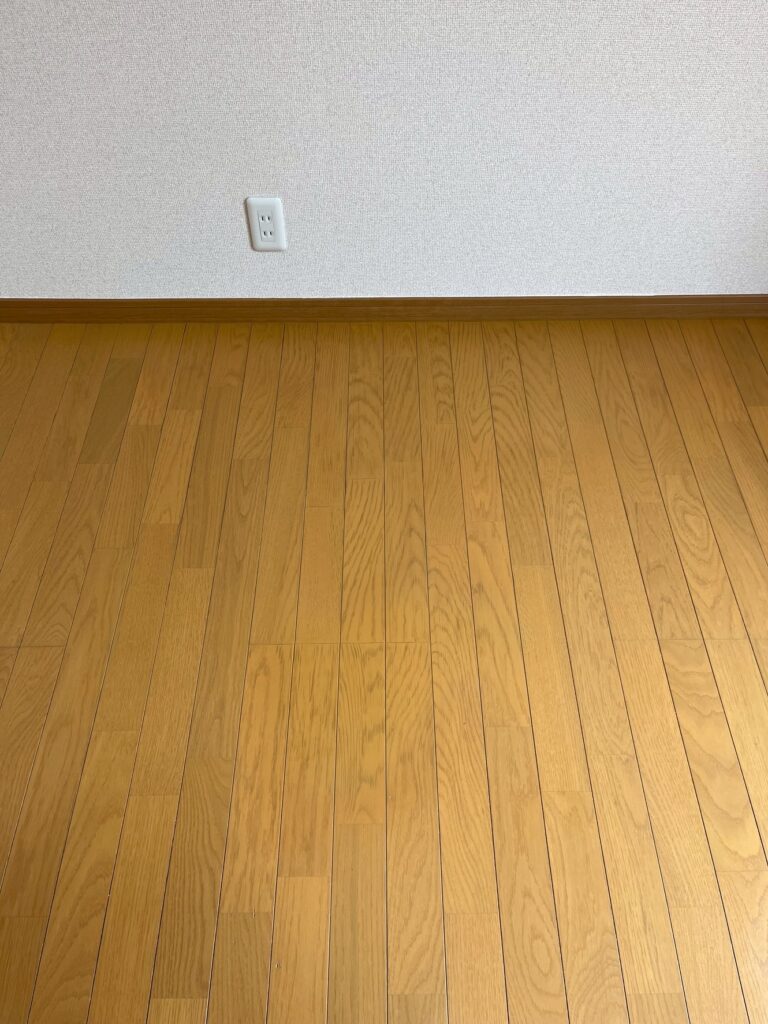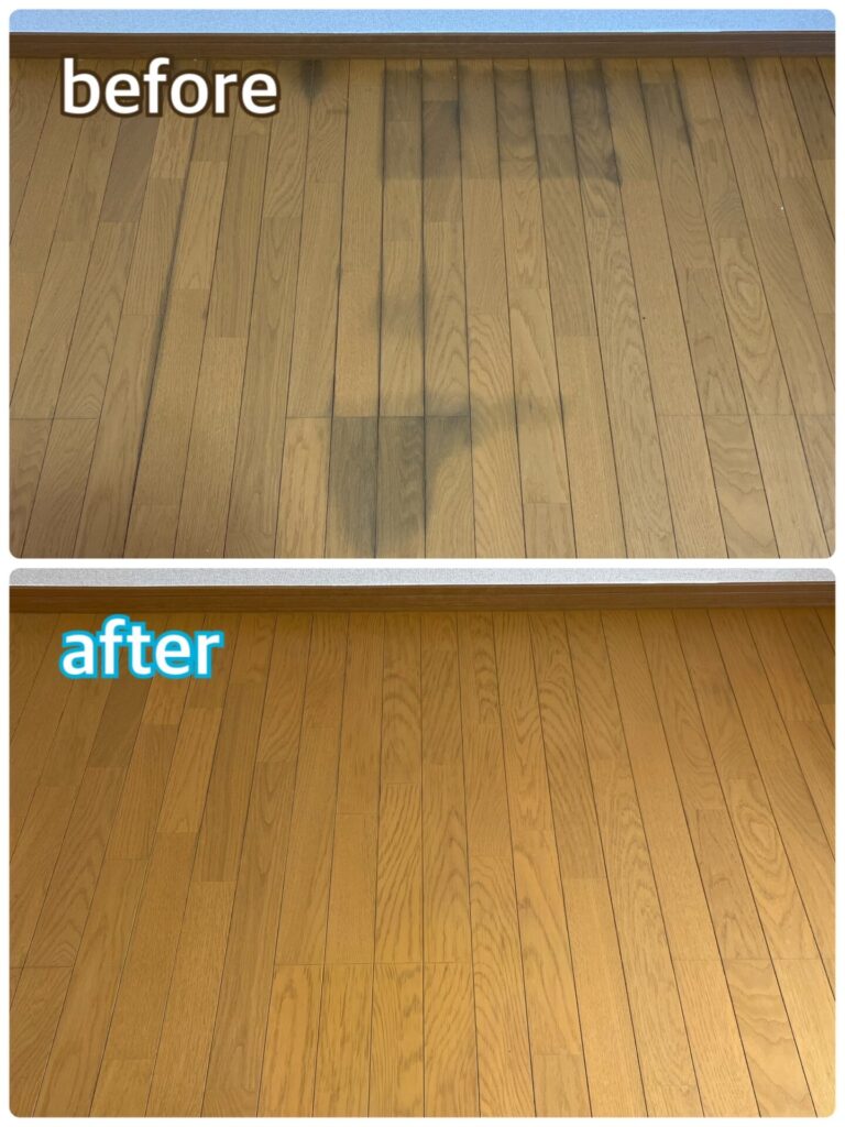 東京都青梅市 戸建て賃貸物件の原状回復 広範囲フローリングのシミ補修です。