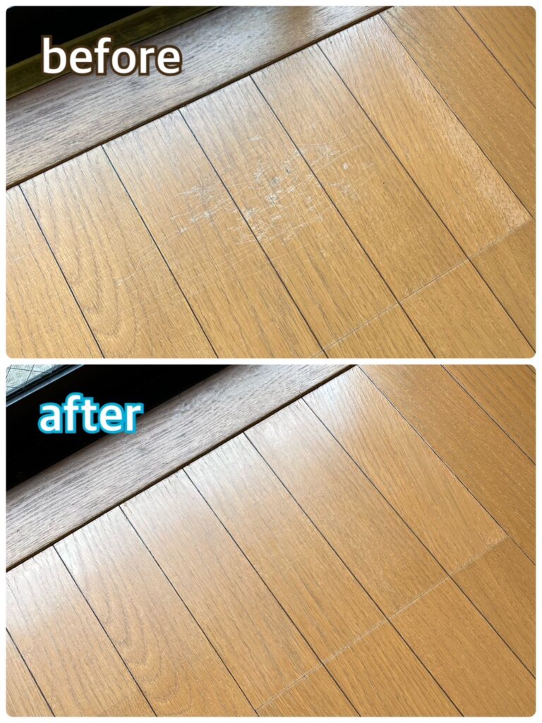東京都瑞穂町 賃貸アパートの原状回復 フローリングの傷補修です。