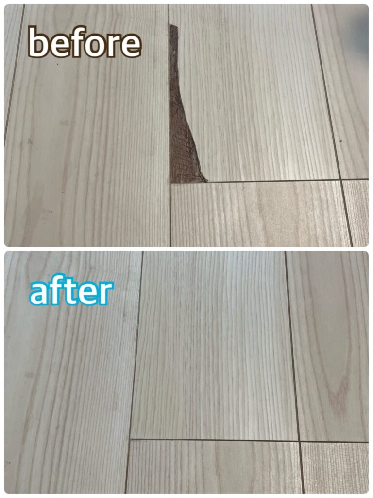 埼玉県所沢市 賃貸マンションの原状回復 フローリングの剥がれ補修です。