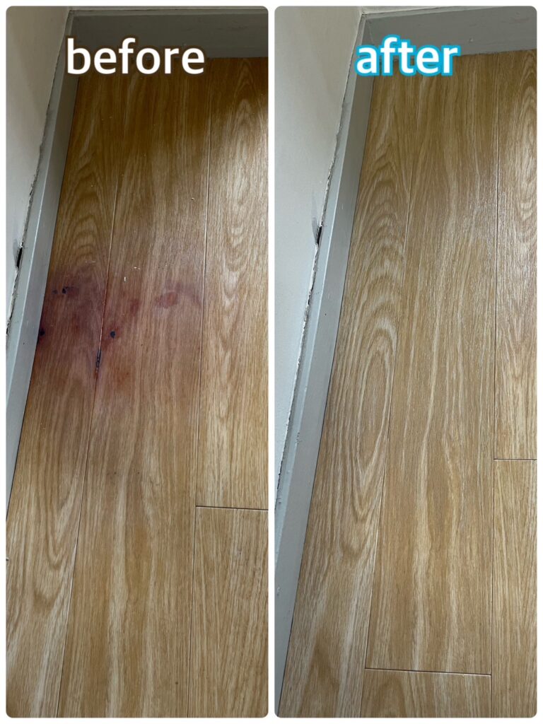 東京都三鷹市 賃貸アパートの原状回復 フローリングの変色補修です
