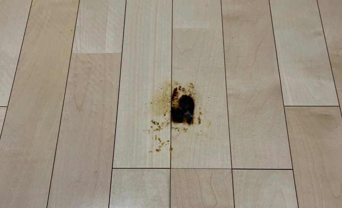 モバイルバッテリーが燃えてフローリングが焦げてしまったとの事です