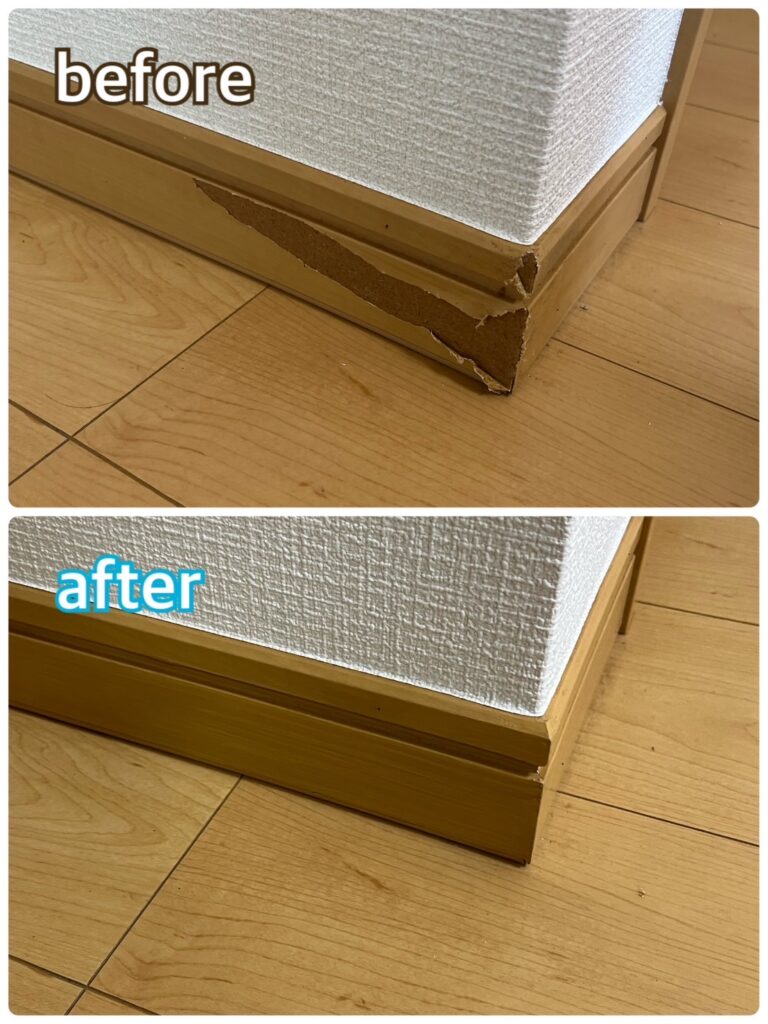 写真の巾木以外にもフローリングや建具など複数箇所の補修がありましたが、